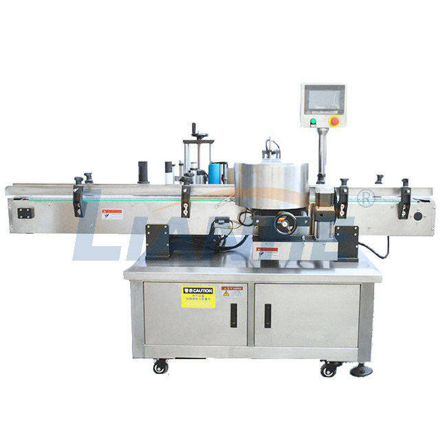 Trabalhos do núcleo: o produto do corpo da garrafa separado, o sensor detecta o produto passa o sinal retornado ao sistema de controlo de rotulagem, o sistema de controlo no lugar para controlar o motor envia a etiqueta afixada ao assunto do produto à rotulagem e a posição, fluxo de produto a tampa da unidade padrão, coberta com rotação padrão os produtos conduzidos, a etiqueta é revestimento do rolo, uma etiqueta unida à ação é terminada.